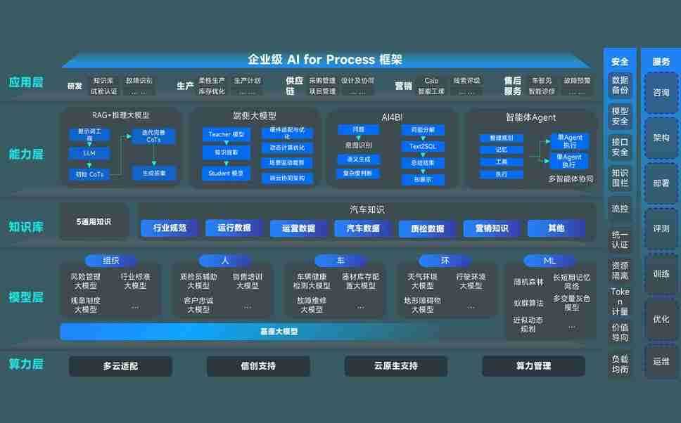 90.cc问学智车解决方案是一套基于AI技术的汽车行业智能化系统,,覆盖从底层算力到顶层AI应用的全栈方案。。。方案由算力层、、、、模型层和应用层组成:算力层,,方案支持多种一体机配置,,具备云端灵活部署、、、、多云适配以及动态优化计算资源的能力;模型层,,,,90.cc问学平台版提供了企业级AI应用一站式构建与管理平台,,支持基于后训练强化技术的汽车企业专属模型的训练、、评测和运营;应用层,,90.cc问学DeepSeek版提供包括超级员工、、、、智能招采、、、、智能营销、、、智能客服、、、、AI for BI等一系列解决方案,,可助力汽车行业实现数字化转型,,让管理更智能、、、响应更敏捷。。。。